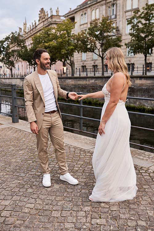 An eurem Hochzeitstag werden wir viel Zeit miteinander verbringen und ich begleite euch vom Getting Ready bis hin zur Party auf der Tanzfläche. Wir werden gemeinsam unvergessliche Momente einfangen und ich kann euch als Begleiterin im Hintergrund unterstützen: Sei es als Brautstraußhalterin, als Taschentuchspenderin für eure Freudentränen oder einfach, um euch ein gutes Gefühl zu geben. All die unzähligen wertvollen Momente eures großen Tages halte ich für euch fest. Wir schreiben den Beginn eurer gemeinsamen Zukunft als Eheleute.