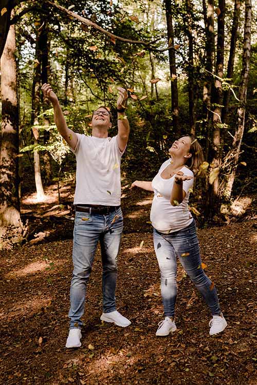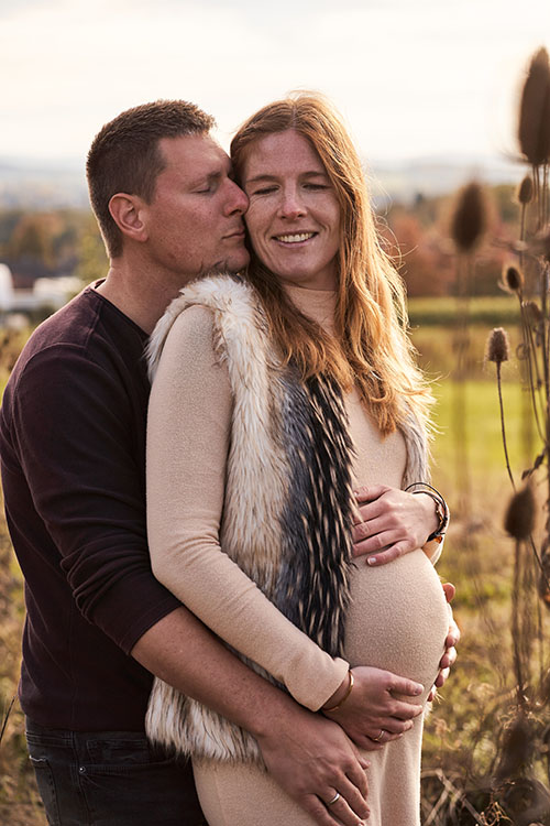 Viele Paare nutzen auch ein Schwangerschaftsshooting, um die freudigen Nachrichten zu verkünden. Mit tollen Accessoires wie z. B. dem ersten Ultraschallbild, kleinen Schühchen oder einem Schnuller können wir auch ohne Babybauch wunderschöne Fotos zaubern.